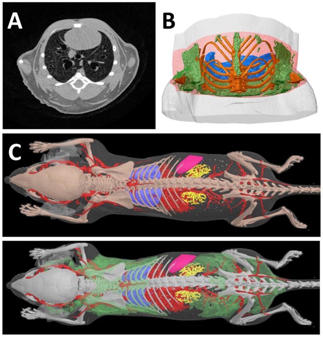 Micro-CT, or micro-Computed Tomography, is an imaging system that provides high-resolution 3D images of biological structures. This system uses X-rays to create cross-sectional images of the body, which are then reconstructed into a 3D image. Micro-CT has applications in the study of anatomical structures, bone density, and tissue engineering. For example, micro-CT can be used to study bone structure and density, to analyze the microarchitecture of tissues, and to study the growth of tumors.
